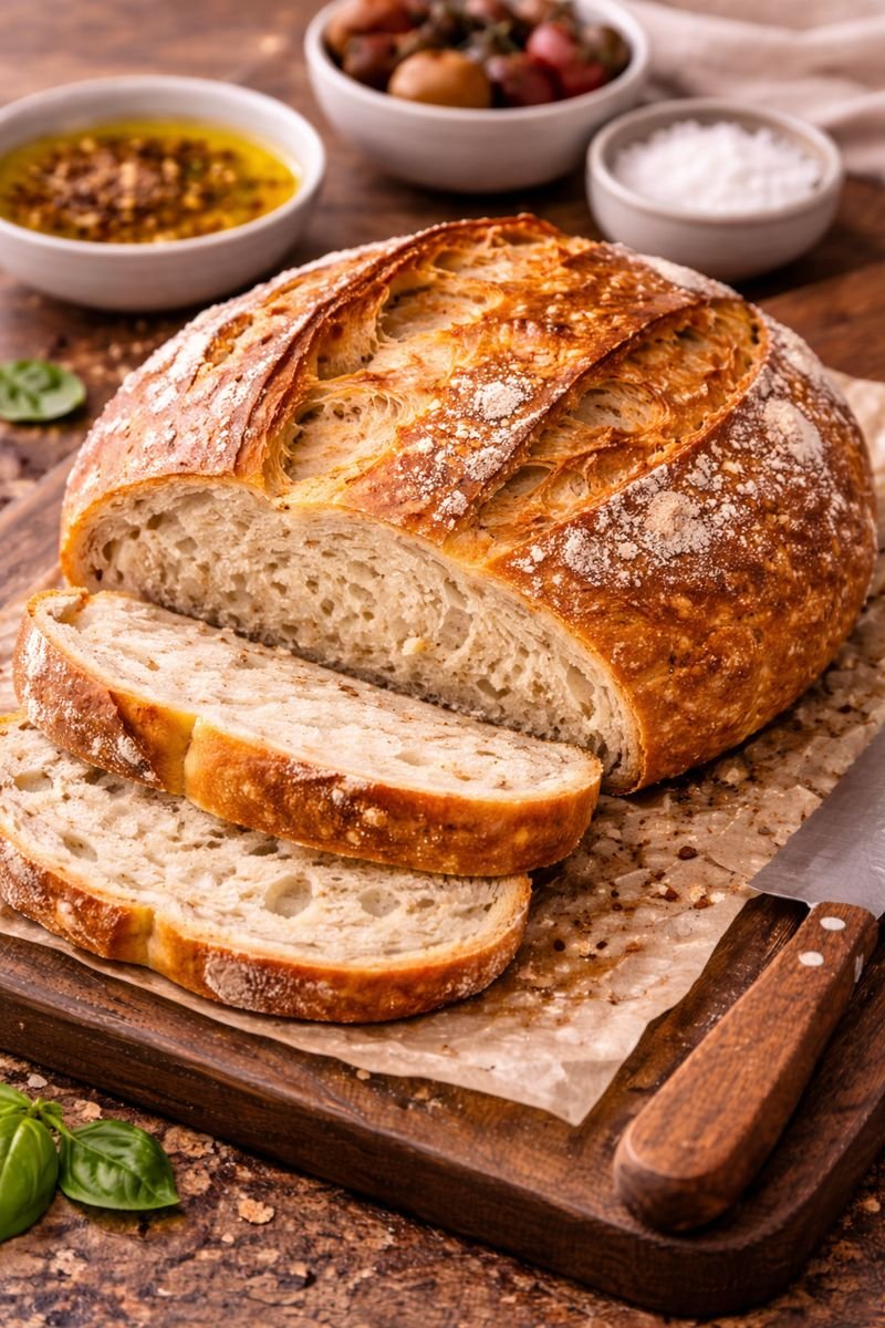 I’m talking about that gorgeous, golden-brown crust that crackles when you slice it. The kind of bread where you can hear the crunch from across the room. And inside? Soft, chewy, with those perfect irregular holes that soak up butter like nobody’s business.