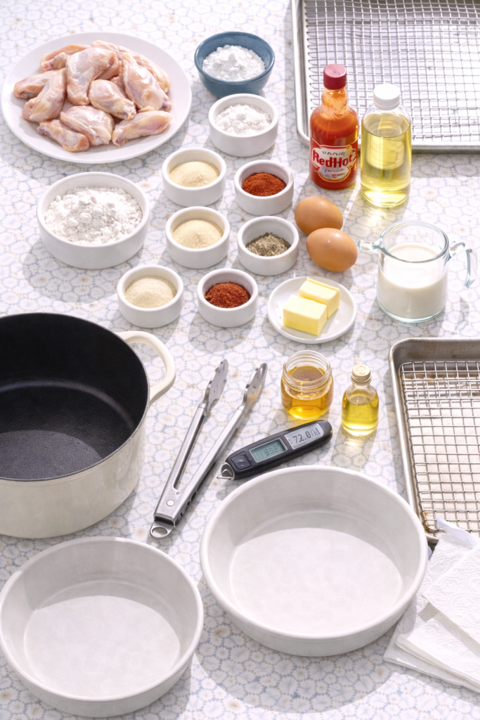 | Chicken wings (split) | 2 lbs (18–20 pieces) | Flats + drumettes, pat very dry |