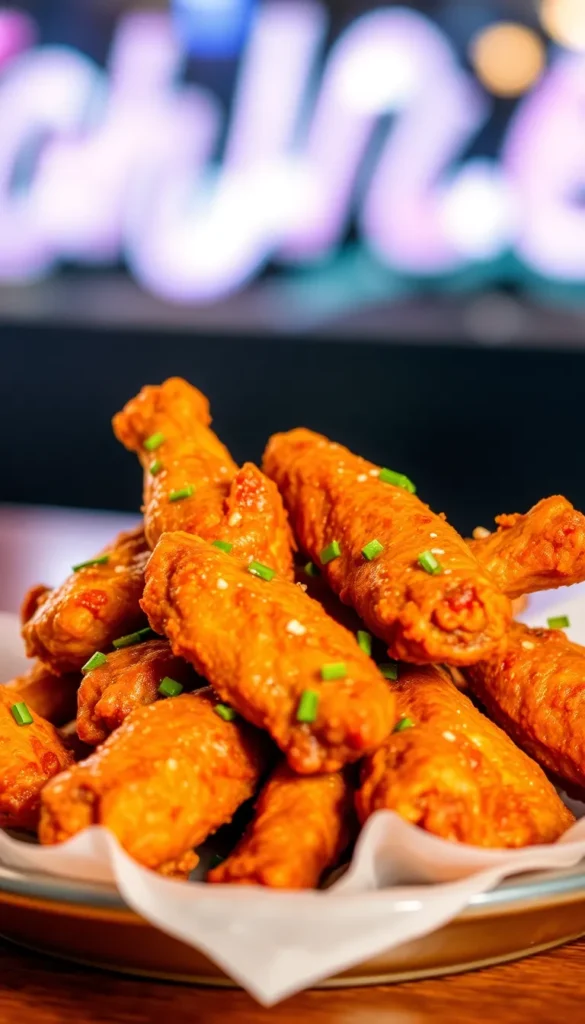 You bite into a wing. The crunch is so loud your table goes quiet.
