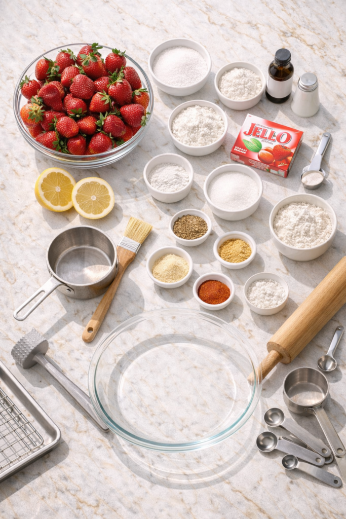 Fresh strawberries. A glaze so glossy it looks like it came from a bakery window. A buttery, flaky crust that shatters when you cut into it. And the kicker — the filling isn’t even baked, so the strawberries stay firm, bright, and tasting like actual strawberries.