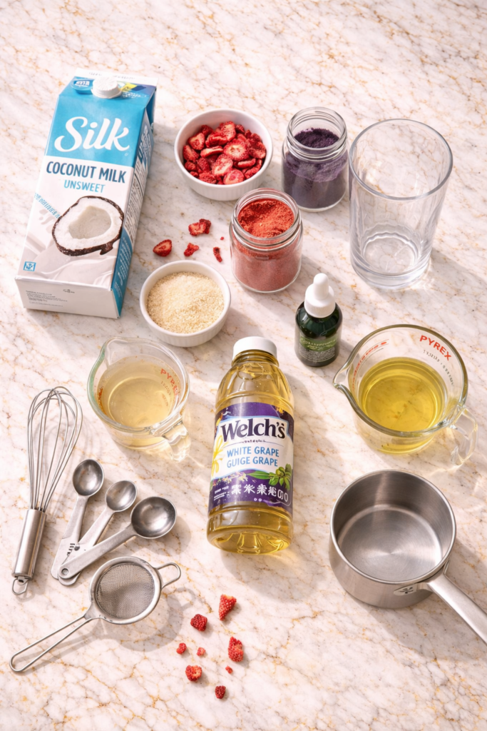 | Freeze-dried strawberry powder | 2 tsp | Key ingredient — don’t skip |