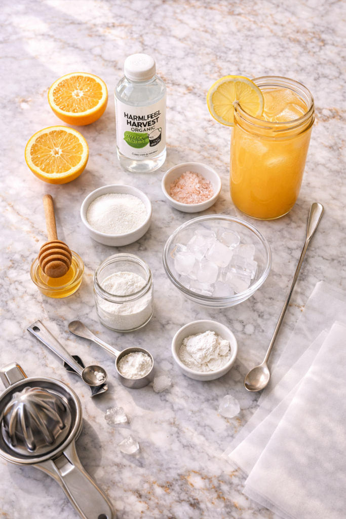 2. Fresh orange juice only. This is not the moment for store-bought concentrate or OJ with added sugar. You want the real vitamin C from fresh juice — not a sugar spike that counteracts everything the drink is trying to do. Cold-pressed, no-sugar-added is the next best thing if you’re short on time.